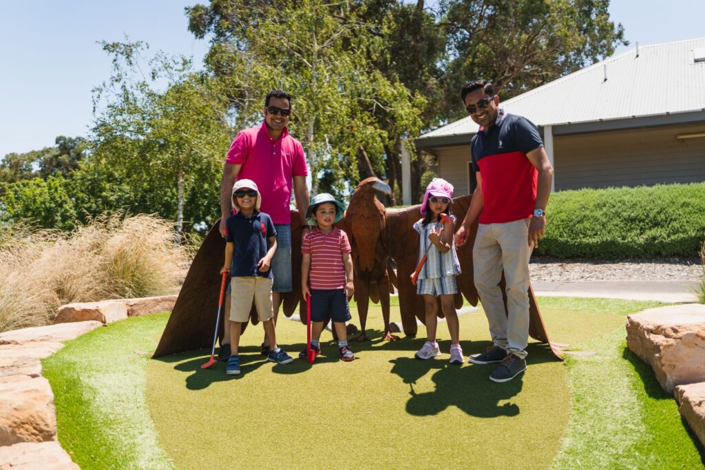 Our golf facilities include the first Goanna Golf, a state-of-the-art 18 hole mini golf course to be enjoyed by the whole family, a 13-bay driving range with four undercover bays, pro shop, function centre, Grass Lands Café and bar, as well as access to PGA-qualified golf professional services.